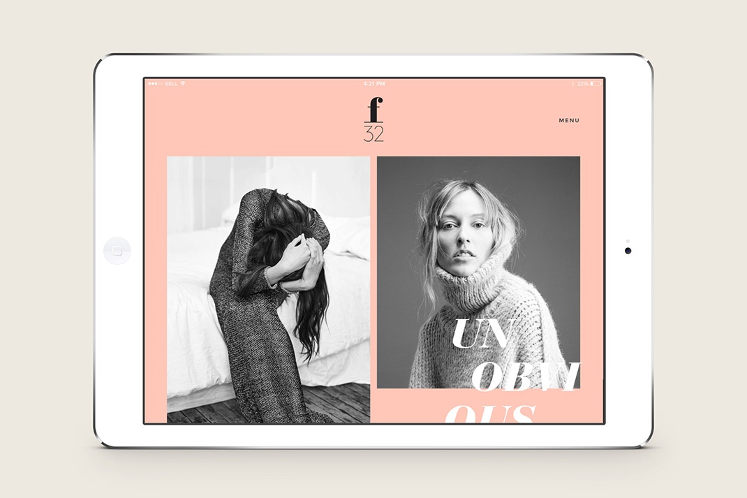 布洛克繪制的F32名稱從攝影詞典,特別是一個設置,提供了最大的景深。在許多方面,視覺身份也有同樣的作用。它追溯過去,跨越海洋,為歐洲平板絲的蓬勃發展,以及向前和國際上的簡化和單線。它配對非常拋光和感覺價值的版箔印刷完成與更個人的品質,一個手印和貼紙。將粉色的女性氣質與經典的奶油和涼爽灰色的都市特質混合在一起。